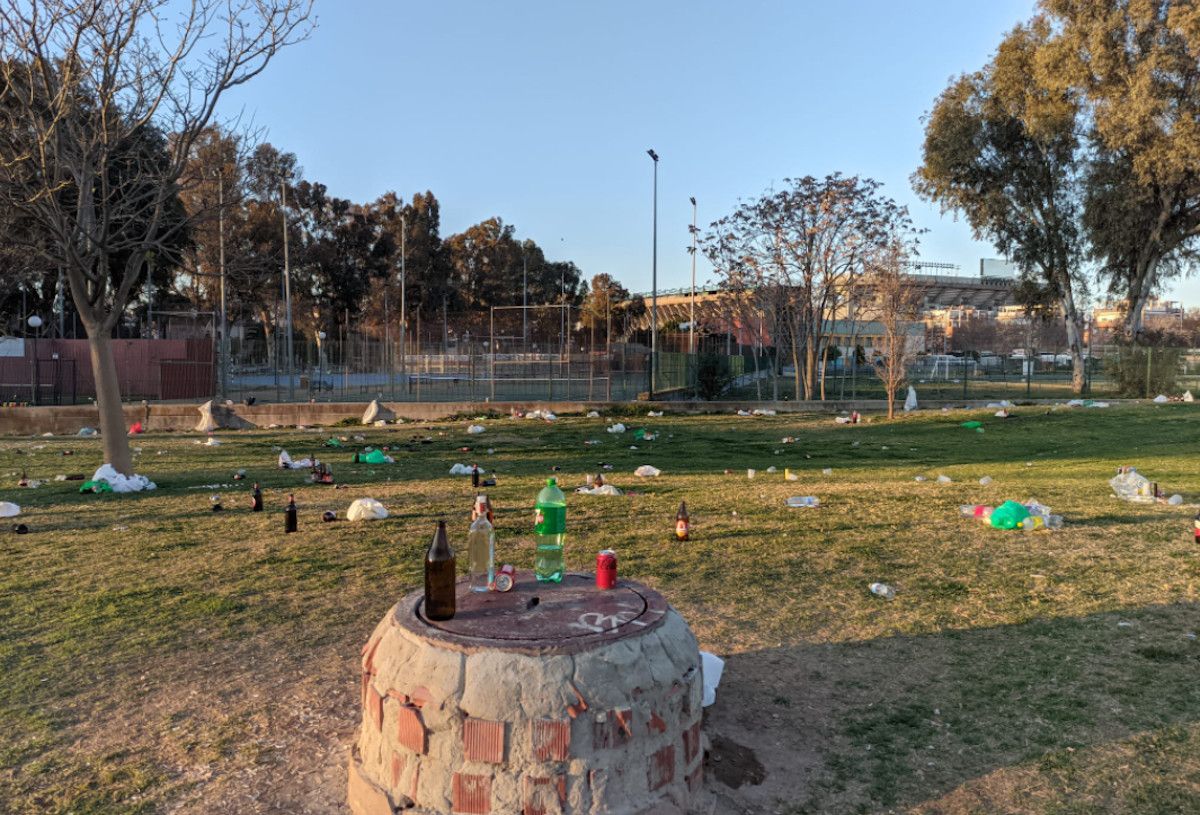 La escena que contemplaron el día del enfrentamiento entre el equipo sevillano y el Mallorca estremeció a los residentes. "Y de nuevo, a pesar de la rapidez con la que el servicio de Lipasam ha recogido la basura, ha dejado el césped sembrado de cristales rotos. Estamos indignados y tristes pero no nos rendimos", ha expresado en sus redes sociales la asociación parque vivo del Guadaira.