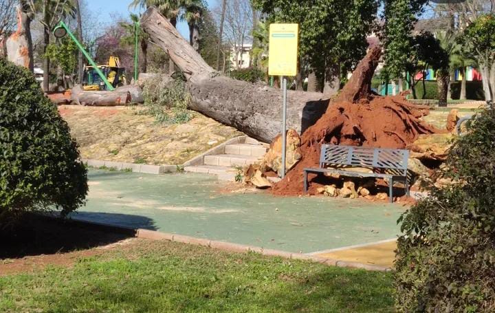 Dos árboles de grandes dimensiones han caído el pasado viernes 14 de marzo por la noche en el parque de la Alquería del Pilar, en Dos Hermanas, en Sevilla. El suceso ha alarmado a los vecinos y, sobre todo, a los colectivos y asociaciones ecologistas que, en octubre de 2023, ya fueron testigos de una situación similar.