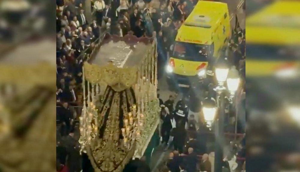 El vehículo sanitario se adentró en la Avenida de la Constitución durante un traslado rutinario de paciente, obligando al paso de la Virgen de Gracia y Esperanza a retroceder marcha atrás hasta la calle Alemanes. El público aplaudió creyendo que era una emergencia real
