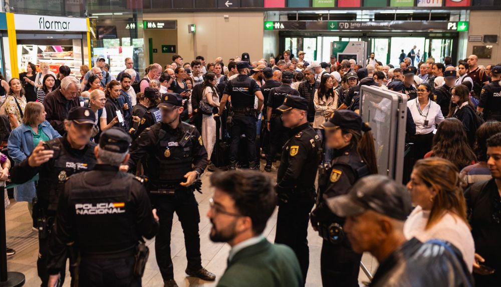 La Policía Nacional se ha desplegado en el hall principal, donde se acumulaban numerosos pasajeros a la espera de información, haciendo colas hacia los mostradores, o pendientes de las pantallas. Más de una veintena de agentes han tenido que tomar las riendas y organizar colas, controlar una de las entradas laterales por si se diera una necesidad puntual (permitir que la cruce por ejemplo alguien con movilidad reducida, por ejemplo) y ayudar a que los trabajadores den respuesta a los viajeros.