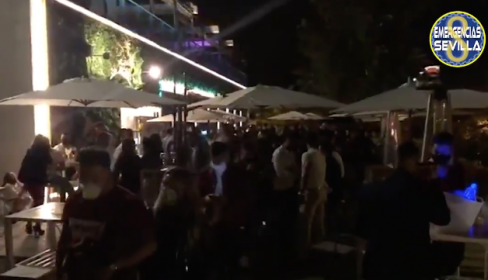 La Policía Local de Sevilla desaloja y procede al cierre cautelar de un restaurante en el Paseo Juan Carlos I, junto al puente de la Barqueta, durante la madrugada del domingo, por incumplir las medidas de seguridad para evitar contagios por coronavirus.