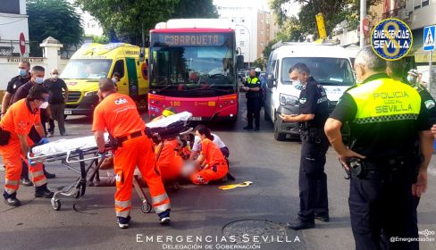 Los servicios de emergencia encontraron al hombre siendo atendido sobre el firme en la Clara de Jesús Montero, una vía de entrada en el barrio de Triana, generando un embotellamiento en la zona desde poco antes de las diez de la mañana.