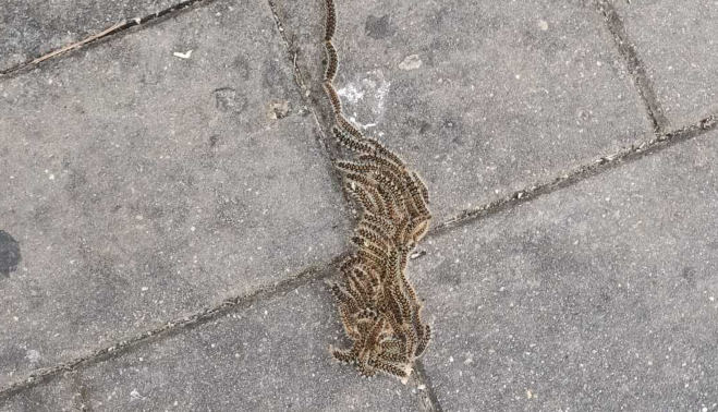 Al final de cada invierno, las orugas que completan su desarrollo larvario bajan en fila por el tronco del pino para buscar el lugar donde enterrarse y transformarse, algo que suele ocurrir en los meses de marzo a junio. Sin embargo, este año, ante las temperaturas inusualmente elevadas para un invierno, han adelantado su bajada al suelo.