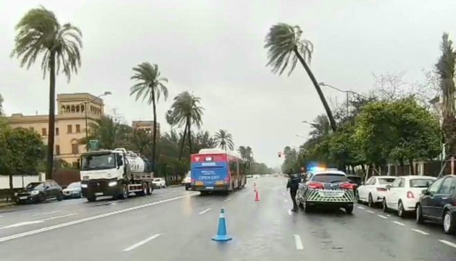 La Policía Local de Sevilla está activando, desde las 18.10 horas de la tarde de este miércoles, cortes de tráfico en la avenida de La Palmera por el peligro de caída de una palmera ubicada en esta importante vía de la ciudad.