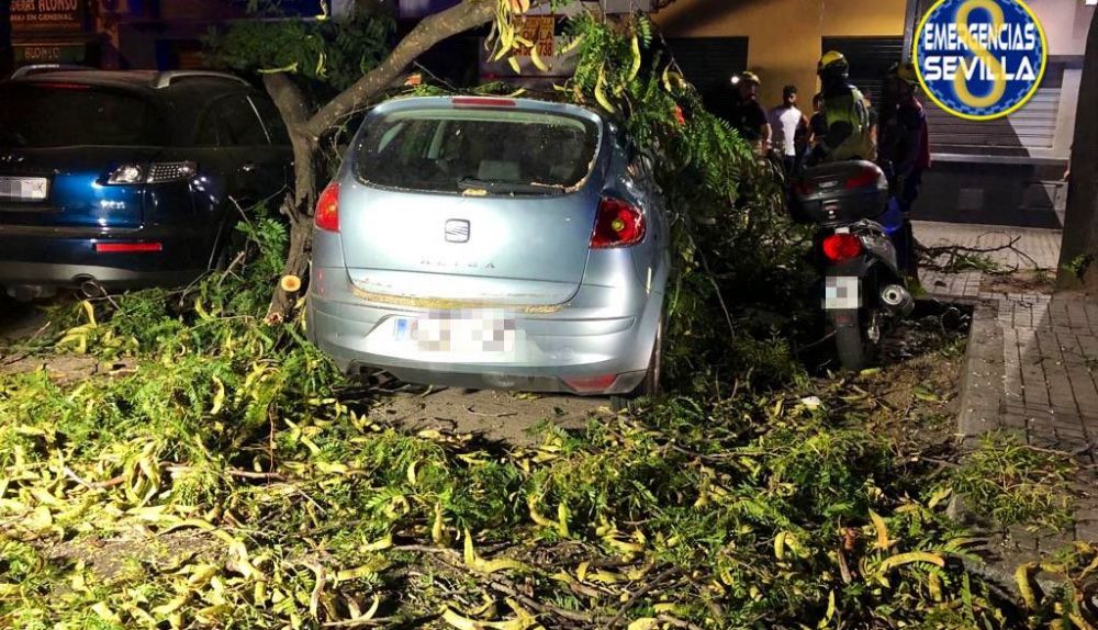 El Ayuntamiento de Sevilla ha confirmado este domingo, a través de Emergencias Sevilla en sus redes sociales, que hay tres heridos leves, de 53, 45 y 14 años, como consecuencia de la caída de una rama, esta vez en la calle Canal, en el Cerro del Águila. Fruto del suceso han resultado dañados varios coches.