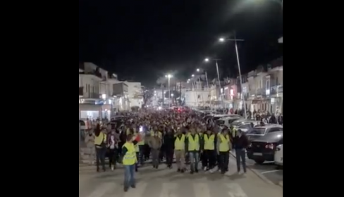 Las Cabezas de San Juan se ha echado literalmente a la calle esta noche para dar su apoyo a los trabajadores del transporte que se encuentran en huelga desde el lunes.