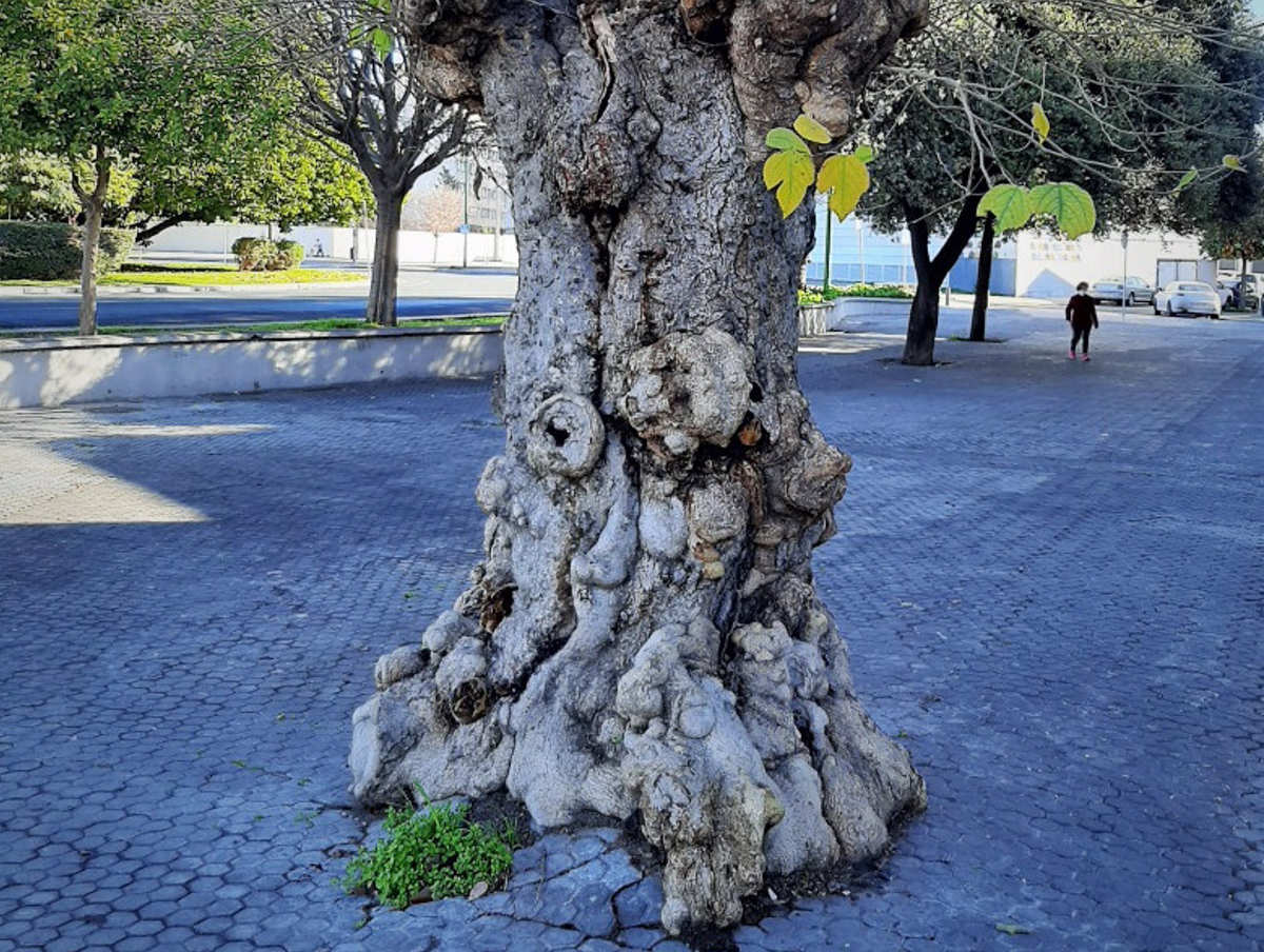 "Es lamentable que este valioso ejemplar no tenga un mantenimiento que lo salve de su posible abatimiento. La Dirección General de Parques y Jardines del Ayuntamiento debería ampliar su alcorque para que pueda seguir viviendo y dándonos su generosa sombra", avisa el colectivo.