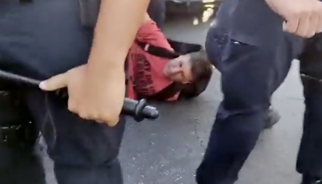 La marcha se desarrolló sin ningún incidente hasta que, en el final del trayecto, la Policía actuó de forma violenta contra uno de los manifestantes, el portavoz de la plataforma vecinal, Juan García, que acabó detenido. Como se observa en las imágenes difundidas por los testigos en las redes sociales, los agentes muestran un actitud agresiva, incluso apretaron su rodilla sobre la cabeza del portavoz dificultándole respirar.