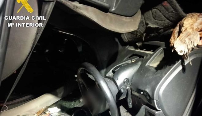 El vehículo accidentado, denunciado como robado en Paterna del Campo, fue vinculado al robo de las aves. Los agentes determinaron que el robo del vehículo no ocurrió y que la denuncia fue presentada para encubrir la actividad delictiva.
