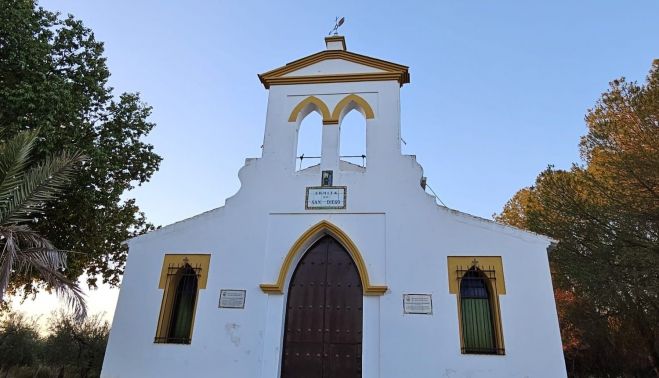 Se trata de las campanas de la iglesia del municipio. La ermita de San Diego apareció este jueves sin las dos campanas que se situaban en lo alto del edificio blanco con detalles color albero. En las imágenes se observa el hueco que ha quedado sin estas particulares piezas.