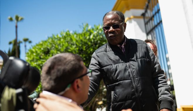 Antonio y Rafa se encontraban en esa comitiva que les ha llevado hasta Nervión. Con cierta timidez, explicaban que estaban desde por la mañana "un poquito nerviosos", pero con muchísima ilusión.