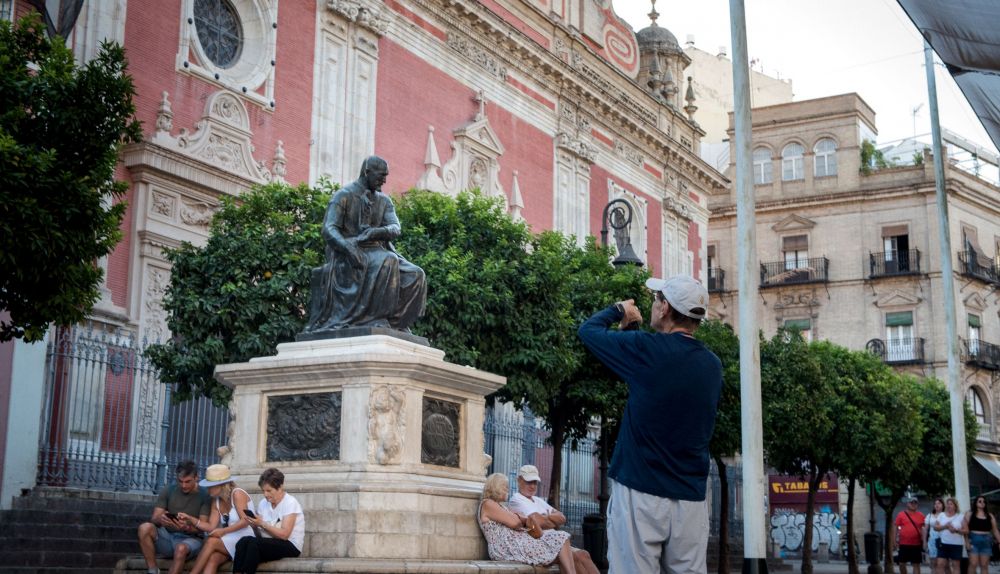No fue hasta bien entrada la tarde cuando operarios municipales retiraron el falso pelo de uno de los máximos exponentes del barroco sevillano. El episodio, que no ha afectado al monumento, se suma a la innumerable lista de episodios de vandalismo contra el patrimonio en las calles de la ciudad.