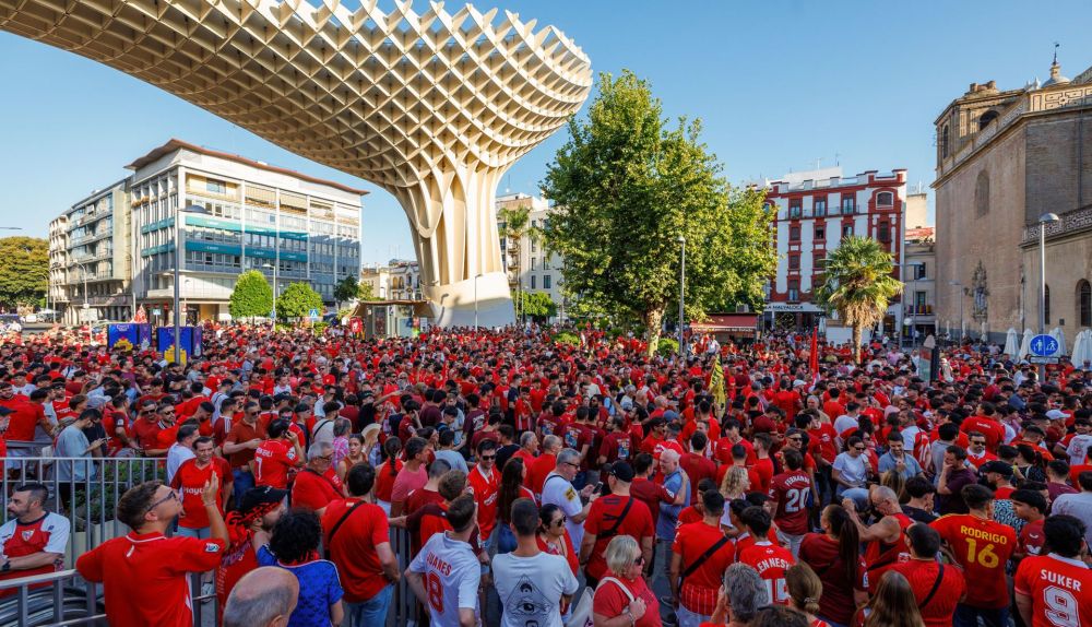 La marcha, que se celebró bajo un calor sofocante, con temperaturas cercanas a los 38 grados, partió desde las Setas de la Encarnación y concluyó en la Plaza Nueva, frente al Ayuntamiento de Sevilla. El recorrido transcurrió sin incidentes, aunque con un tono de protesta encendido y cánticos que ya resuenan desde hace tiempo en las gradas del Ramón Sánchez-Pizjuán.