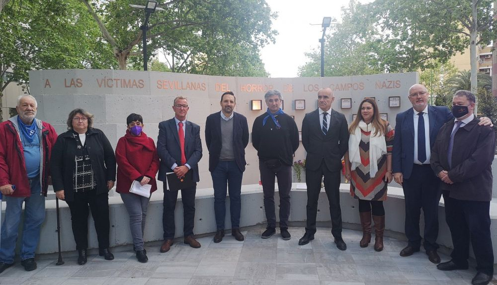 El alcalde de Sevilla, Antonio Muñoz, junto con la delegada del Distrito Sur, Marisa Gómez, ha asistido hoy a la inauguración del monumento en homenaje a las víctimas sevillanas de los campos de concentración nazis en el bulevar de la Avenida Diego Martínez Barrio impulsado por el Ayuntamiento de Sevilla, a través de la Oficina de la Memoria Histórica de la Delegación de Igualdad, Participación Ciudadana y Coordinación de Distritos y en coordinación con la Mesa de Participación de la Memoria Histórica, cuyos representantes también han estado presentes en el acto, así como la Asociación Amical de Mauthausen y otros campos y de todas las víctimas del nazismo de España.