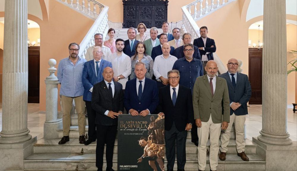 El alcalde de Sevilla, José Luis Sanz, ha presentado este jueves la exposición ‘El Arte Sacro de Sevilla en el corazón de Europa’, una ambiciosa muestra que se celebrará del 22 al 26 de septiembre en el Parlamento Europeo de Bruselas. El evento cuenta con el impulso del Ayuntamiento de Sevilla, la propia institución europea y la colaboración de la Asociación Gremial de Arte Sacro de Sevilla.