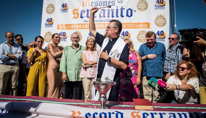 La imagen ha sido más que pintoresca. Desde el mismo notario midiendo centímetro a centímetro y comprobando el contenido del serranito para que no pudiera ser confundido con un piripi a un sacerdote bendiciendo esta creación ante la mirada de César Cadaval.