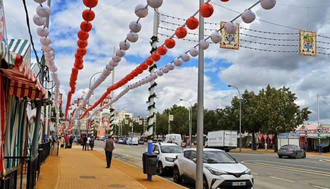 Tras varios chubascos durante el fin de semana, todo hace indicar que este lunes el tiempo será seco. Por ello, el Real ya se puede encontrar engalanado para una de las semanas grandes de la ciudad a tan solo unas horas de que se celebre la tradicional cena del 'Lunes de Pescaíto'. Desde por la mañana, caseteros, familias y operarios ultiman los detalles para que todo transcurra con normalidad esta misma noche y durante los próximos días.
