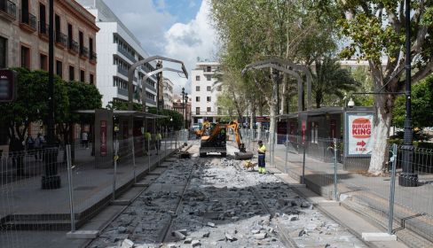 Asimismo, se ha tomado una medida como poco llamativa: para evitar males mayores, en el paso del tranvía por avenida de la Constitución se está poniendo alquitrán. Es una medida para un tiempo hasta afrontar más remodelaciones.