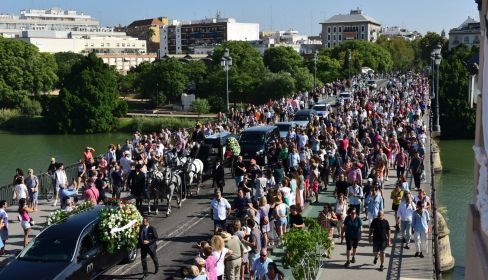 Tanto Sevilla como el barrio de Triana ya han dado su último adiós a la cantante y artista María Jiménez. Su última voluntad se ha cumplido con creces y desde las 10:45 su férretro ha paseado por las calles de la ciudad y del barrio que la vio nacer hace 73 años y la vio morir este pasado jueves.