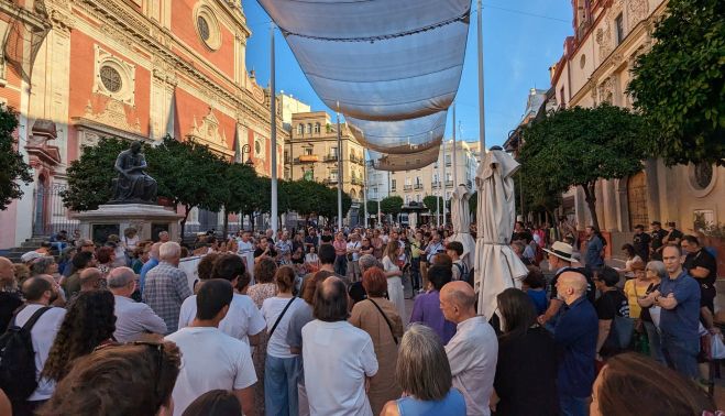 Sevillanos en la plaza del Salvador. De por sí, ya podría ser noticia. Porque este miércoles, la asociación Sevilla Se Muere convocó en la céntrica plaza para alertar sobre los excesos del turismo. Y ocupó, así, un espacio que sienten que ya no es suyo, como otros rincones del centro de Sevilla. Si bien no fue una manifestación masiva de miles de personas, sí parece que cala con un sentir que existe en la calle: hacen falta nuevas políticas para mejorar la convivencia del turismo, primera industria de la ciudad, con el día a día de los sevillanos. Hasta ahora, quizás, la más numerosa. Es decir, que el movimiento, de origen vecinal, va a más.