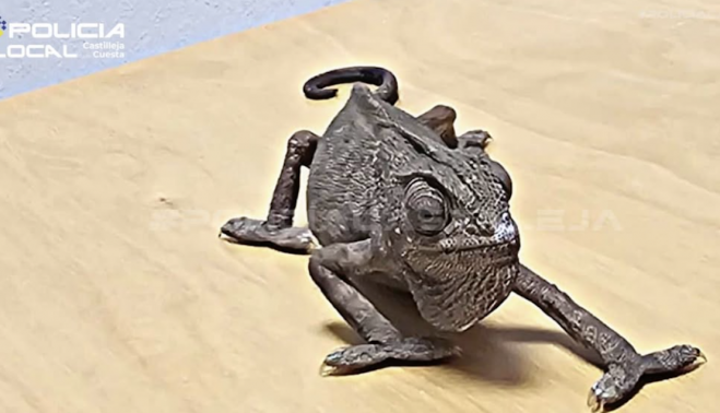 El reptil fue encontrado en la calle y entregado en la Jefatura por un vecino. Los agentes no dudaron en darle cobijo en la oficina, intentando cuidarle de la mejor manera. Toda esta situación llevó a publicar la foto del 'agente' en tono de humor: "Se adapta a todas las situaciones, es camaleónico".