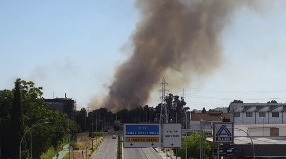 Una zona de pastos de la carretera SE-31 es el origen de un incendio muy llamativo, con una enorme columna de humo que no está pasando desapercibido para los muchos conductores que circulan por la zona, y para los viandantes.
