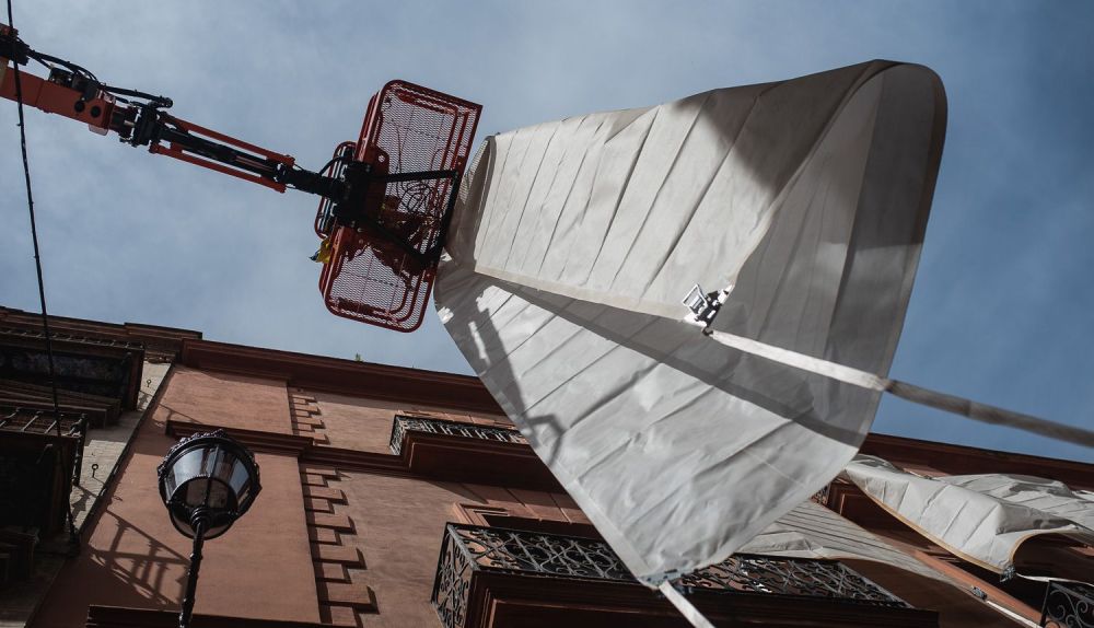 A la vez que prácticamente se acababa la Semana Santa, ha comenzado ya el montaje de los toldos de cara al verano. Serán 27 calles las que cuenten con estos tejidos de nueva fabricación, anunciados por el gobierno local meses atrás, que ha querido expandirlos, y que servirán para limitar las más altas temperaturas.
