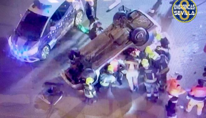 En este caso, la conductora pudo salir del interior por sus medios, pero la ocupante, de 19 años de edad, tuvo que ser rescatada por agentes de Policía de Sevilla, siendo hospitalizadas con lesiones sin pronosticar. En ambos siniestros intervinieron agentes de Policía Loca de Sevilla, Policía Nacional, Bomberos y sanitarios.