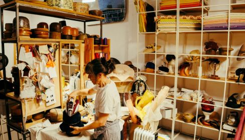 Cuesta que Patricia lo reconozca porque ella misma es la discreción en persona, de modo que se limita a sonreír y a no negarlo mientras busca sus gafas en ese ecosistema de colores y texturas que conforman las mesas de su taller, pobladas de trozos de fieltro, de piel de conejo o castor, de lana, o de rafia, materiales de origen vegetal como el sisal, el bambú o la palma, cuyos pliegos enormes proceden del otro extremo del mundo y llegan jerarquizados en calidad y precio que la experimentada Patricia aprecia de un solo vistazo o con las yemas de los dedos.