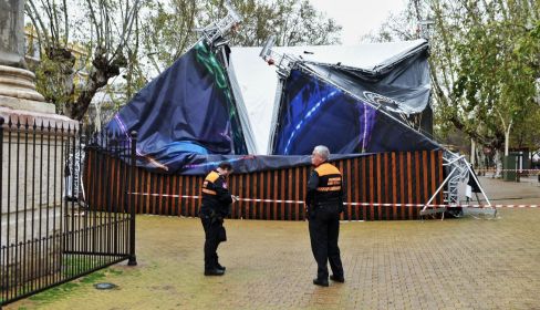 Al menos dos niñas han resultado heridas al final de la mañana de este jueves, alrededor de las 12.30 horas, al colapsar una carpa en la Alameda de Hércules, en Sevilla, en un planetario que funciona como cine.