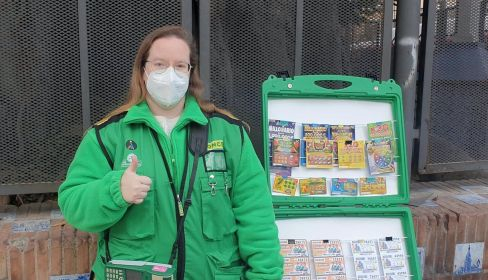 La suerte la ha dado Fátima Ortiz a las dos semanas de estrenarse como vendedora de la ONCE, en su punto de venta ubicado los fines de semana a las puertas de la parroquia de San Jacinto, aunque entre semana vende en Pagés del Corro.