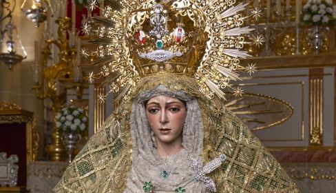 A las 7 de la mañana se han abierto las puertas de la parroquia para los hermanos de la Hermandad. Allí han podido contemplar nuevamente la restauración llevada a cabo por Pedro Manzano pero, además, han podido observar el primer trabajo de José Carlos Gutiérrez, el vestidor jerezano que a partir de ahora será el responsable de la vestimenta de la Virgen.