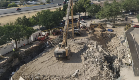 Tampoco se han reportado heridos, aunque podría haberse producido una tragedia tanto para trabajadores como para personas del citado edificio, donde un coche ha quedado muy afectado por cascotes.
