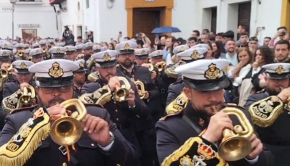 La lluvia estaba amenazante antes de caer, había eso que uno percibe como aire 'de agua'. Y cuando sonaba Eternidad, de la Banda del Rosario de Cádiz, se hizo más evidente que las gotas cogían cada vez más fuerza. Era solo la segunda marcha que sonaba.
