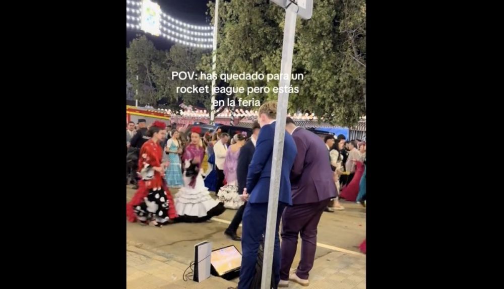 Uno de esos vídeos es de unos chavales que sacaron una Play Station 5 en mitad de la Feria, muy cerca de la portada, y echaron una partida. En concreto, al videojuego Rocket League, que, de forma resumida, es una especie de videojuego de fútbol combinado con coches, donde el usuario controla un vehículo y tiene que empujar un balón hasta una portería. Un juego muy popular.