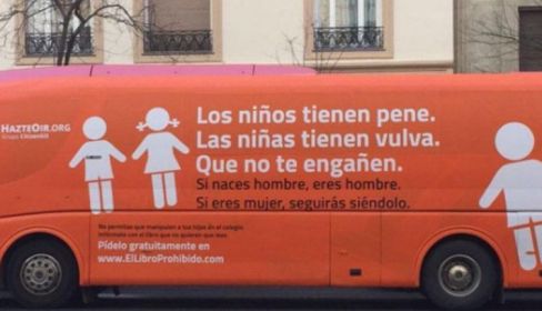 Aquellas personas que nacen con el cuerpo equivocado y desean tener los genitales de un hombre en vez de los de una mujer, o viceversa, se han sentido denigradas y rechazadas por un grupo que dedica su tiempo a publicitar folletos en los colegios para alertar a los padres del peligro de "adoctrinamiento ideológico" que, según esta asociación, sufren los niños en las escuelas donde se introduce la diversidad afectivo sexual en las clases. Este grupo fue noticia en noviembre de 2016 por enviar 100.000 publicaciones a distintos colegios españoles donde se podía leer que las leyes pro-LGTBI, "lejos de ampliar la protección", vulneran algunos de los derechos fundamentales de los ciudadanos y rompen así el principio de igualdad jurídica de las personas. Tres meses después, Hazte Oír vuelve a la acción aumentando su rango de público, y como informa el citado periódico, contempla extender esta misma campaña a autobuses públicos de ciudades como Barcelona o Valencia.