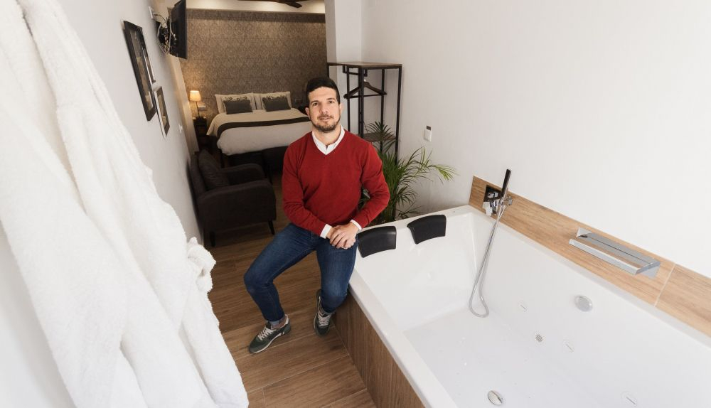 “Siempre me han gustado las casas con encanto y soy un apasionado de la arquitectura”, comenta Juan Ramón, graduado en Ciencias Políticas en Madrid. Aunque no llegó a ejercer, trabajó en una tienda de ropa y asomó la cabeza en la hostelería hasta que, once años después, decidió dar un giro a su vida. Dejó la capital española para volver a su tierra y fundó una tienda de vinos que acabó transformándose en un bar. Paralelamente, consiguió un puesto en el Ayuntamiento, que además, compaginaba con la nueva idea que estaba brotando en su mente.