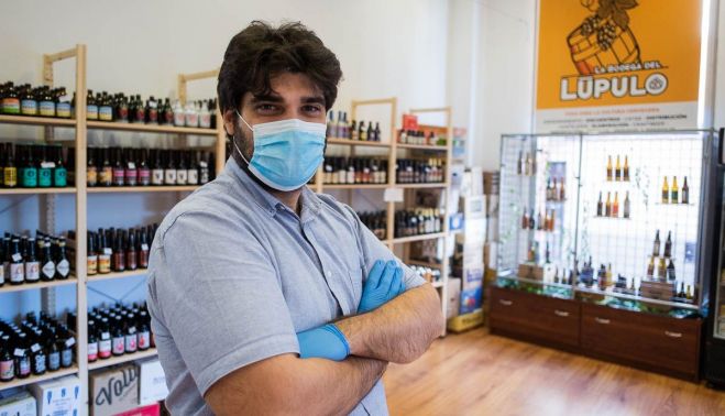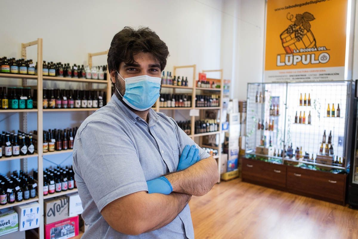 Hace unos meses, a Alberto Cala Rodríguez no se le pasó por la cabeza que una pandemia global viniera a frustrar la apertura de su nuevo negocio. "Menos mal que no he cogido el local en una gran superficie", dice a lavozdelsur.es en su recién estrenada tienda. Se refiere a las fases de desecalada y las limitaciones impuestas a la venta al público en grandes almacenes. Afortunadamente su local, ubicado en la calle San Cayetano, entre calle Zaragoza y calle Santo Domingo del centro de Jerez, es un (pequeño) templo de la cerveza artesana. "Con lo del nombre ha venido gente diciendo que una bodega no es", bromea. La bodega del lúpulo es simplemente el refugio para todos aquellos que quieran disfrutar de una buena craft beer. Por supuesto, en casa.