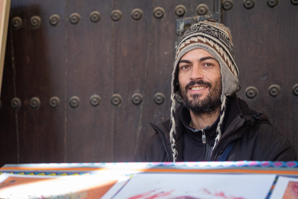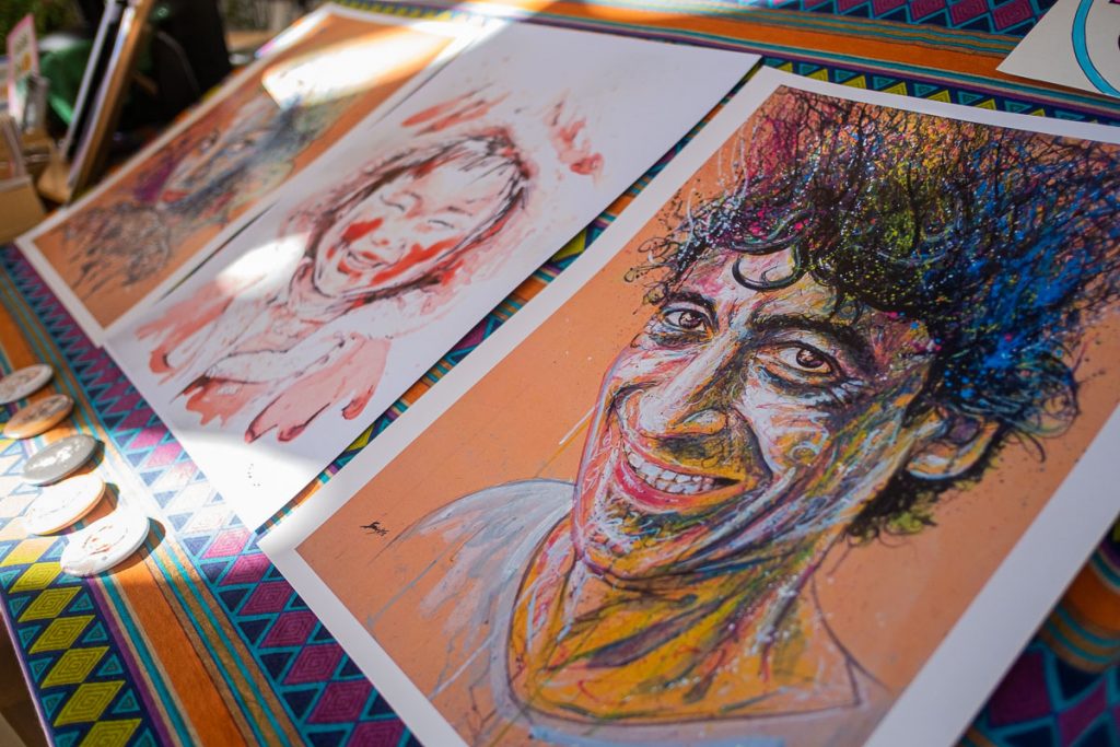 "Soy autónomo, tengo que hacer presupuestos y esas cosas, esto es nuevo para mí, ando aprendiendo porque soy una micro, micro, micropyme", asegura a lavozdelsur.es ante un stand repleto de merchandising, láminas, originales, retratos de gaditanos ilustres y hasta una novela que él mismo ha escrito e ilustrado, Atlantes. Entre su versátil trabajo, con unos singulares y coloridos retratos de Mala Rodríguez y Caballero Bonald, destaca de un vídeo sobre el trabajo que más tiempo le ocupa en estos momentos y que lleva a cabo junto a su pareja, Azahara García, principalmente en centros educativos de la ciudad. "Ponemos un puntito de color diferente a lo que se hace en la escuela", adelante un artista multidisciplinar formado en la Escuela de Arte y que, posteriormente, estudió en la Universidad de Granada y en Cuenca con una Beca Séneca.