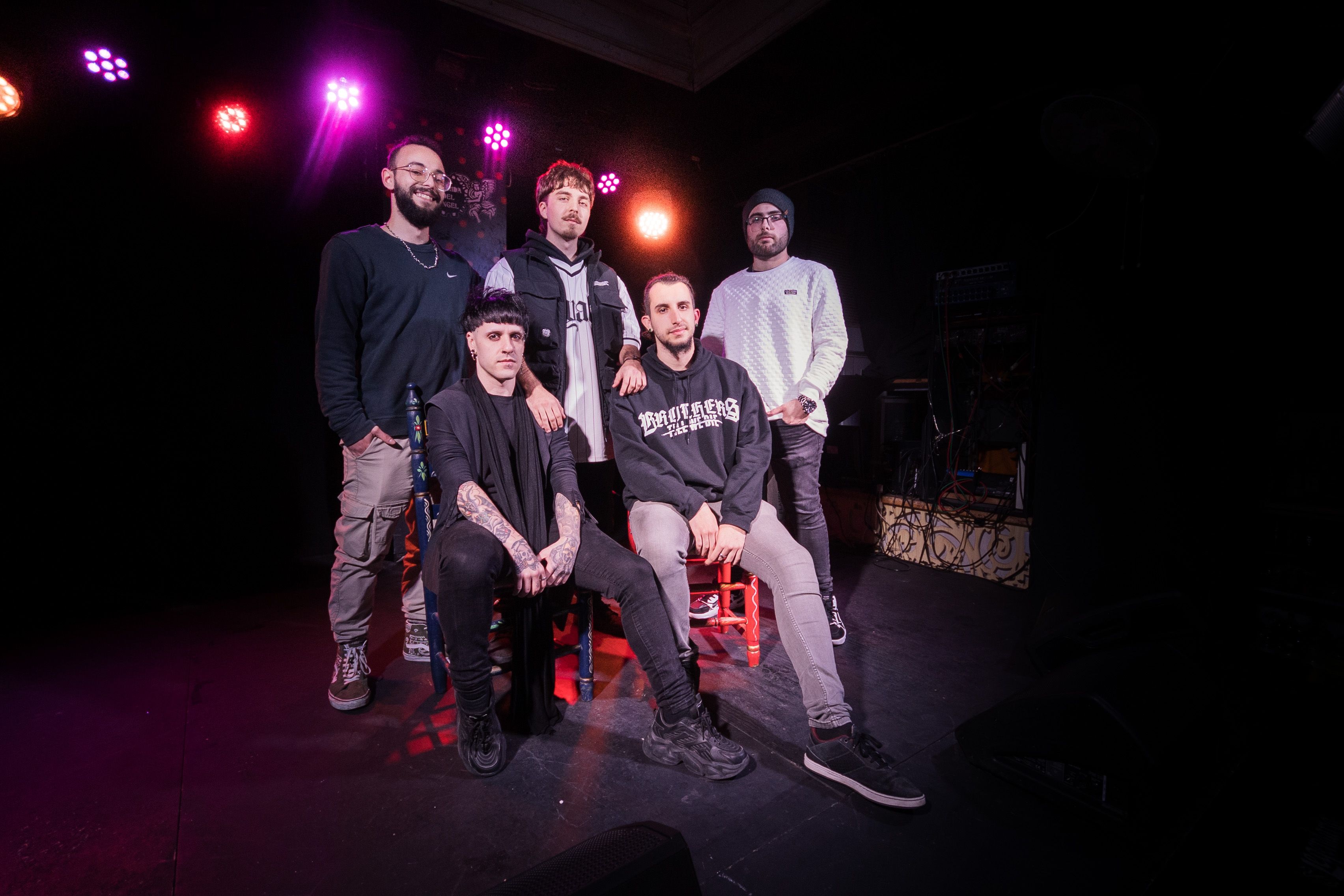 Paimon (voz), Moshu (guitarra solista), Kaesai (guitarra rítmica), Ascedeus (bajo) y Veimir (batería) son apuntados por un foco de la sala La Guarida del Ángel. Son Kardinal Punch, banda jerezana de metal alternativo, metalcore, hardcore y death metal, que se puso en contacto con la agencia. Las rifs enérgicos y las voces melódicas dan vida a este grupo surgido en 2019 que proponen algo diferente y moderno. “Es muy novedosa, es la única que hay en Jerez de este tipo”, señala Jorge.