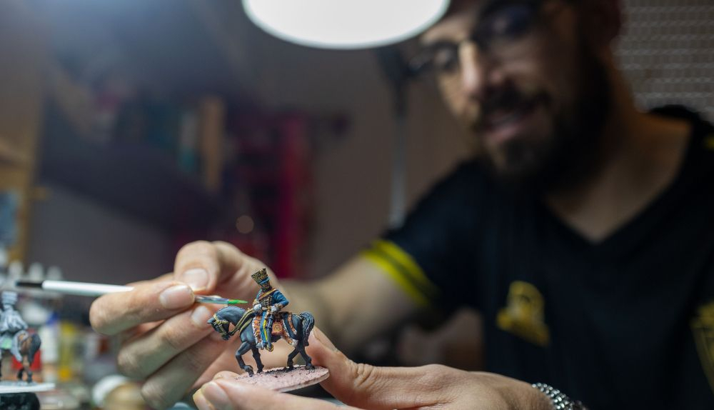 Hace doce años empezó a pintar por encargo todo tipo de miniaturas, tanto de juego como de exposición, hasta que se puso al frente de un equipo dedicado en exclusiva a esta minuciosa labora, donde importa el color de los uniformes y hasta la sombra de las patas de los caballos.