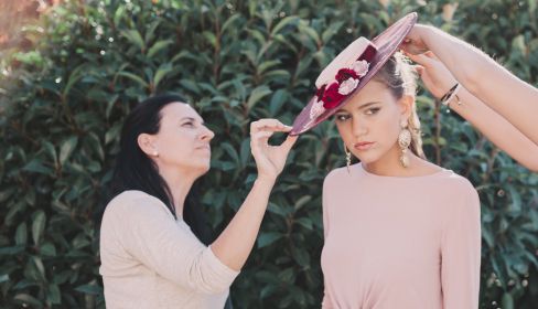 "Yo no me esperaba esto", confiesa con voz queda. "Estaba convencida de que algún sitio iba a llegar, porque me veo una persona muy capaz. Y con respeto, educación y trabajo, en esta vida se consigue todo. Creo que se puede llegar muy lejos trabajando una hartá", rie al teléfono. "Son muchas horas con la empresa", continúa. La perseverancia y el esfuerzo la caracterizan. Pero sobre todo la polivalencia y la imaginación, y es que en cuatro años ha sido capaz de crear su propia insignia para destacar. "Somos tanta gente haciendo tocados y sombreros, que yo necesitaba hacer algo que me diferenciara". Y lo consiguió al crear un diseño de lazo ancho con punta ovalada para que aquellos que lo vieran lo relacionaran con su marca. Lo tiene incluso registrado, y han sido muchas las tiendas que han copiado su modelo, como por ejemplo Zara, la joya de Inditex. "En el diseño diferénciate, deja volar tu imaginación", aconseja.