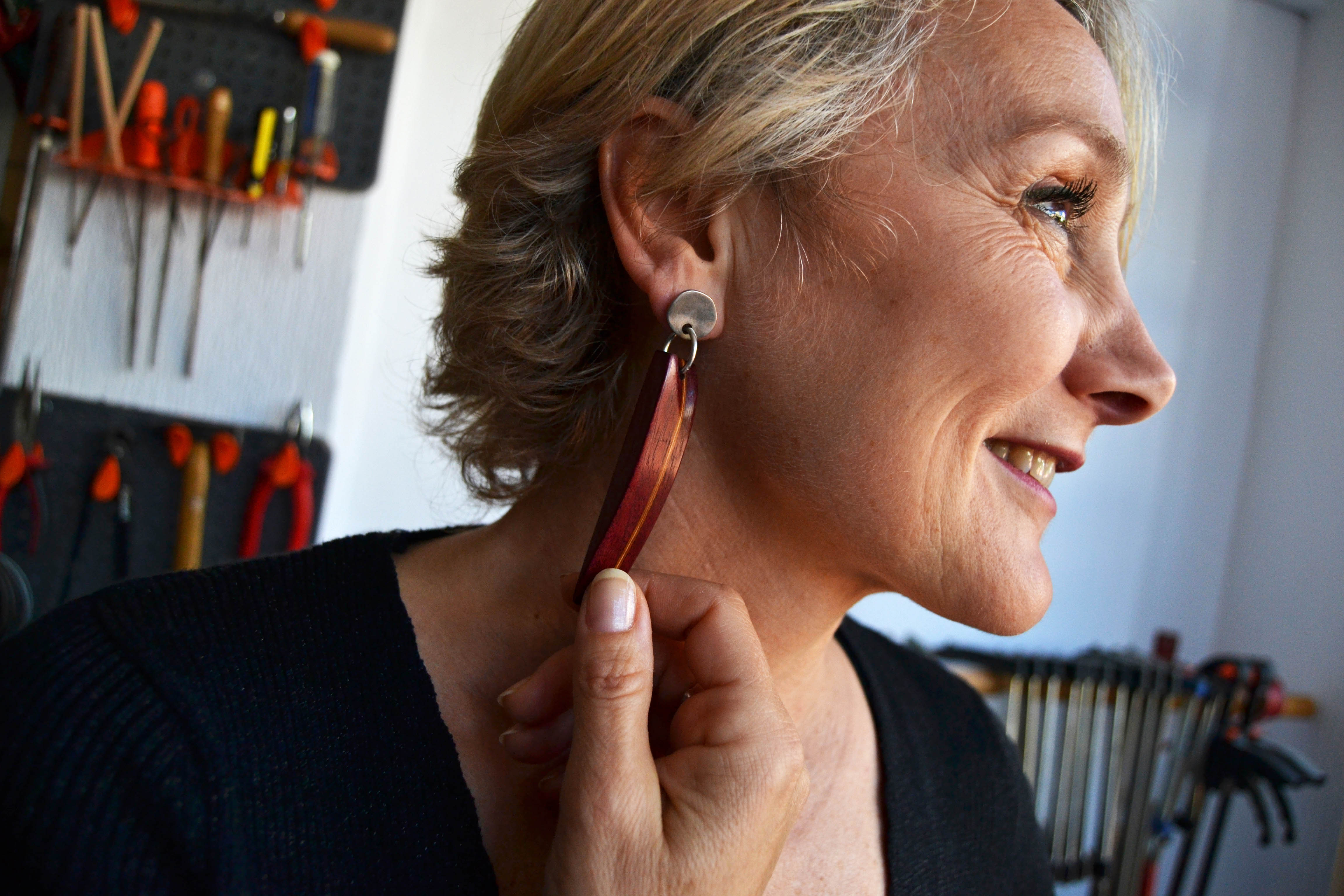 Fortín mostrando una de las joyas de madera fabricadas artesanalmente por ella. FOTO: CLAUDIA GONZÁLEZ ROMERO.“La gente alucinó, me pedían más y más joyas”, comenta sobre sus originales pendientes y collares de madera. Le iba tan bien que incluso registró su propia marca. “Me gusta hacer formas libres, movimientos, curvas… A mis esculturas las llamo forma pura, de ahí que mi marca se llame Formapura”. Llevó sus creaciones a diferentes joyeros de Rovigo y participó en la feria internacional de artesanías más famosa de su país. Aunque como narra, la cosa finalmente no cuajó. Los joyeros empezaron a pedirle una producción en serie y ella se negó a que su producto dejase de salir de sus manos y perdiera el carácter exclusivo. “A mí me gusta hacer piezas únicas y creo que ahí está la diferencia entre el artesano y el artista, porque el artista no reproduce, crea”.
