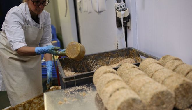 Queso de leche de cabra, de oveja y mezcla. Los quesos de El Bosqueño, si por algo se caracterizan, es por usar materia prima de la Sierra, ya sea cabra payoya —la más conocida— o de oveja merina de Grazalema. Esto para los hermanos Gago es sagrado, y el tiempo y el reconocimiento, tanto de sus clientes como de los críticos gastronómicos, les está dando la razón. Al último primer premio en Madrid destacan el tercero obtenido a finales de 2016 en los World Cheese Awards, la feria del queso más importante del mundo gracias a su queso de oveja emborrado en salvado de trigo, un queso “sexy y romántico” según los críticos, que también colocaron entre los diez mejores al elaborado con queso de cabra curado en manteca ibérica. “Aquí ya no hablábamos de categorías, sino que se enfrentaban queserías y 3.600 quesos de todo el mundo y de todos los tipos para elegir al mejor de los mejores”, destaca el empresario, orgulloso del hito conseguido.El Bosqueño da actualmente trabajo a catorce personas en su factoría, lo que atestigua que el trabajo bien hecho no está reñido con la cantidad. “Nuestro toque mágico está tanto en la elaboración como en la maduración de los quesos”, señala Gago. El proceso, artesanal, no difiere mucho del que se hacía hace un siglo, aunque a mayor escala y con los avances sanitarios exigidos actualmente. La leche de cabra y oveja, fresca y de primera calidad procedente de las ganaderías de confianza de El Bosqueño, llega a la fábrica —a diario procesa 8.000 litros— y se deposita en los tanques, donde apenas pasará unas horas antes de que se empiece a trabajar con ella, previo paso a su pasteurización. Una vez esto, la leche pasa a las cubas donde se llevará a cabo el proceso de cuajado, en el que esa leche pasará a tener una textura similar a la de un yogur. Esa masa se irá cortando a diferentes tamaños y se lleva a cabo un precalentamiento al baño maría para obtener el tamaño de grano deseado. Una vez más dura, y tras soltar además un suero que se reutilizará como alimento para animales, pasará a los moldes, donde primero se le hace un prensado a mano y luego, otro a máquina. Dependiendo del tamaño, reposará más o menos, hasta que se saque del molde y pase a la salmuera y, posteriormente, al proceso de curación. Entre uno y dos meses los semicurados y a partir de 110 días y hasta dos años los curados, elaborados en manteca, en pimentón, con romero, en aceite o en aceite con salvado de trigo… Así hasta más de 30 variedades, a las que se unen sabores más innovadores como el queso de oveja merina curado al ron añejo o en licor de Arrayán, y una producción total de 100.000 kilos de queso al año.