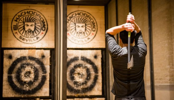Sentirse un vikingo de la antigua Escandinavia durante unas horas ya es posible en el centro de Sevilla. Desde hace poco más de un mes, en la calle Feria, una de las más pintorescas de la capital hispalense, los sevillanos y visitantes de la ciudad pueden encontrar El Hachódromo. Este local rompe con todo lo que hemos conocido hasta ahora como ocio. Aunque también comparte algunas de sus características.