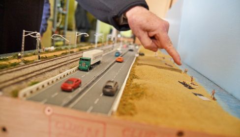 Ambos cuentan que la exhibición tiene que estar constantemente controlada por ellos, ya que durante la exposición circulan varios trenes guiados por los semáforos en miniatura porque los "semáforos lucen y gobiernan el paso de los trenes". Debajo de cada módulo hay un circuito eléctrico repleto de cables de todos los colores. "Este —señala a Antonio José— es más de electrónica, yo me dedico más a decorar", rie Pedro. Por ello, las maquetas representan al 100% la realidad, pero a una escala menor. Nada pasa desapercibido en el mini mundo ferroviario de este grupo de amigos.