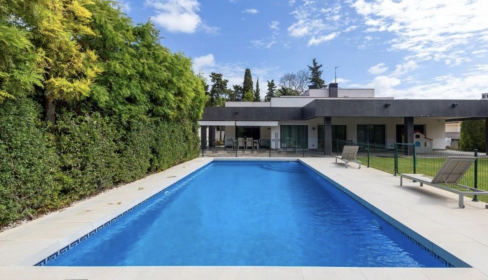 El otro espectacular chalé a la venta, también en la zona Avenida (calle Gibraltar), tiene una superficie de 1.690 metros y 525 metros construidos. Cuenta con un amplio jardín con muchísima vegetación y árboles que cubren todo el perímetro dando a éste una intimidad total, piscina de agua salada, caseta para depuradora y dos porches con orientación sur.
