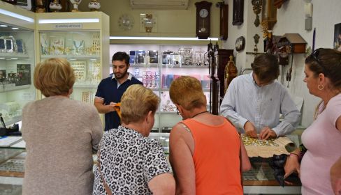 Mientras Álvaro limpia unos pendientes de plata con nácar, una señora espera a que Ladislao traiga su reloj. "Me lo llevo puesto, que lo he echado mucho de menos", apunta la mujer. "¿Más que al marido?", bromea el encargado. "Hombre a mi marido lo veo cada día, pero esto lo miro a cada instante", bromea. Al hablar de la historia de la Joyería Dogma mientras los cuatro despachan a la clientela, algunas evocan imágenes, recuerdos ligados a dicho establecimiento. "Yo tengo una esclava de soltera que me regaló mi marido que es de aquí", comenta una señora con una amplia sonrisa. "Yo recuerdo a tu padre ahí", dice otra. "Esto es un negocio puramente familiar. Aquí viene a comprarnos la nieta que antes venía con su abuela o bisabuela", comenta Ladislao. Por el momento, aseguran que continuarán con el negocio, sobre todo porque tienen la mirada puesta en celebrar el centenario de 'La Joyita'.
