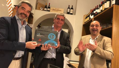 La dirección de Posventa hace entrega de la placa que acredita el premio del certamen a Juan Manuel Romero, gerente de Albariza Motor. Mitsubishi Motors asegura que se enorgullece de contar en su red con un concesionario que cumple con las máximas exigencias de calidad, fruto de una organización formada técnica y profesionalmente, orientada a satisfacer las necesidades de sus clientes.