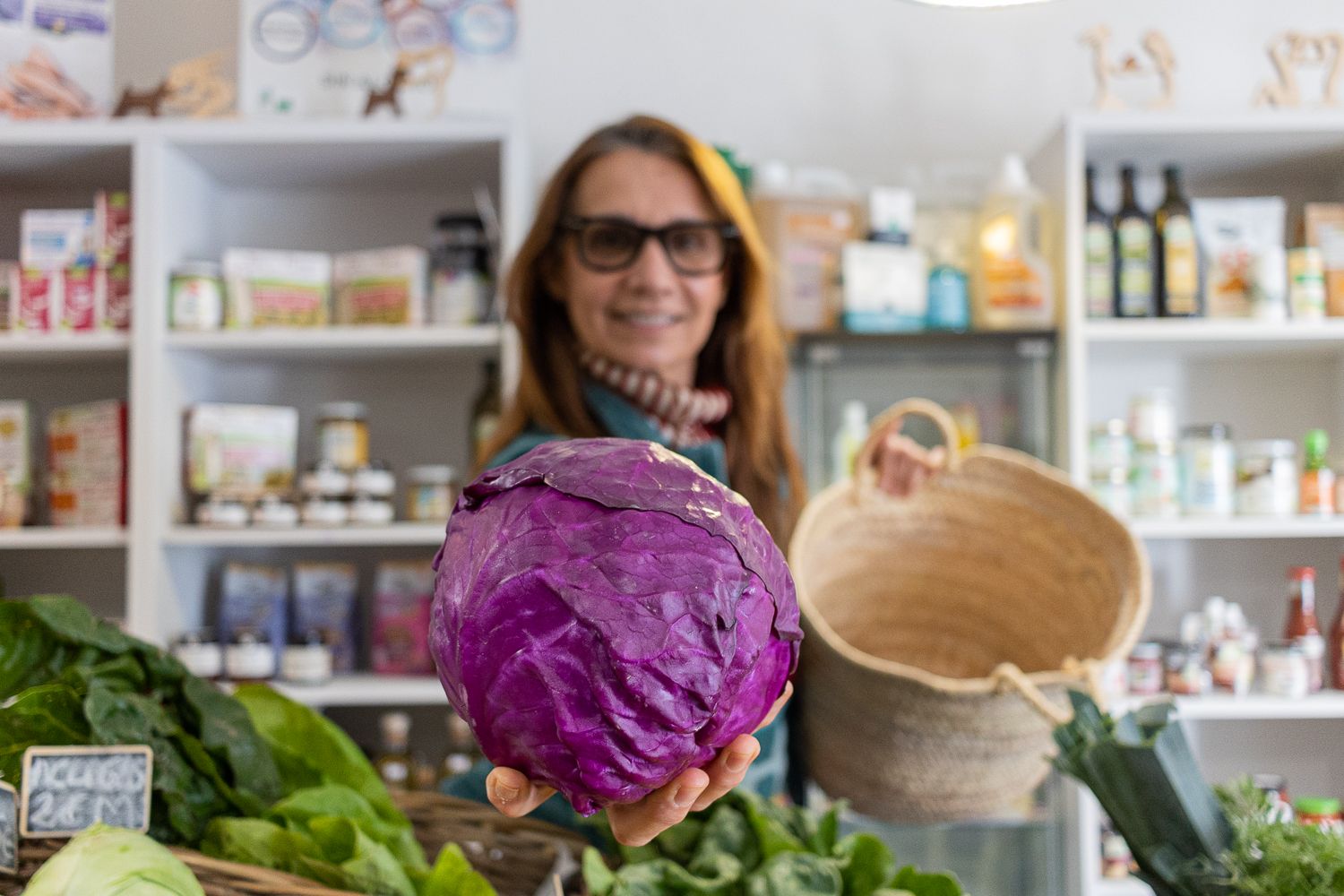 En definitiva, existe la versión eco de todo lo imaginable, o sino de todo, de muchos productos que suelen reposar en los mercados. En el centro, las reinas son las frutas y las verduras. Con una lombarda en la mano, explica que apuesta por los productos locales. “El pan viene de Puerto Real, Facinas y Sevilla y la verdura de huertos ecológicos con certificados de Chipiona y Málaga”.